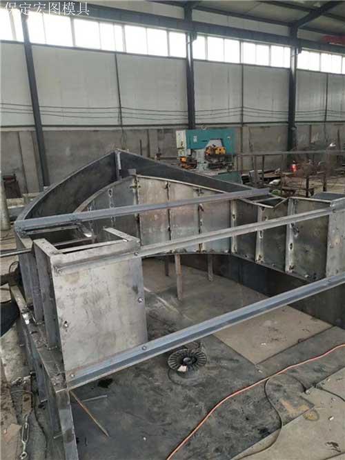 混凝土收费岛模具是一款不容易变形的收费站模具,一般简单的钢板的厚度为3mm,如果过于薄容易出现断裂或者是变形的问题,宏图模具从事防撞岛模具多年,分为收费岛岛头模具,岛尾,中间三部分组合出来的,方便更换和使用,需要注意的是,中间的部分是可以不用钢板的,这样为客户节约使用的成本。
